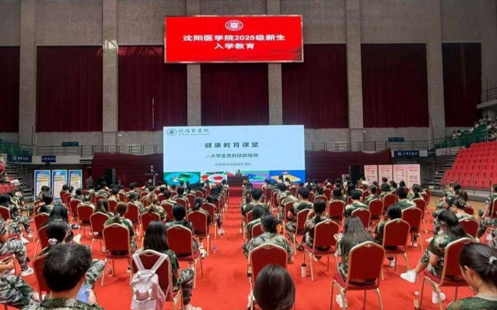 为落实全国学校急救教育试点学校建设工作,进一步普及急救教育,提升大学生应急救护能力,近期沈阳医学院医院管理处在学校体育馆举行新生入学健康教育课堂系列讲座--大学生急救技能培训。本次培训邀请中国红十字会应急救护师资许桂英教授主讲。来自全校各学院的2025级新生代表聆听讲座。