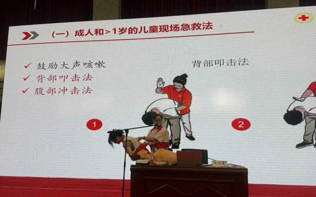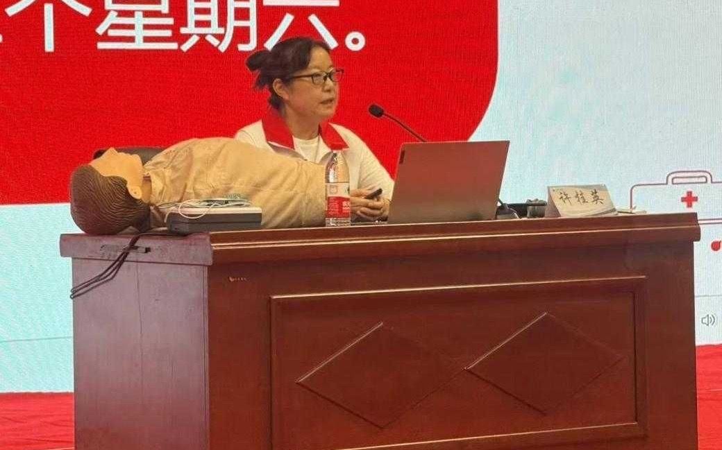 中国红十字会应急救护师资许桂英教授围绕“心肺复苏(CPR+AED)”做了重点培训。培训分为理论讲解、现场演示、实践操作三个环节,许桂英教授分别对红十字运动起源、救护相关法律法规、心肺复苏(CPR)、自动体外除颤器(AED)、气道异物梗阻等几个方面进行详细讲解,指导同学们了解心肺复苏的操作流程,掌握关键急救技能,许老师现场借助模拟人就AED的使用方法进行标准示范,直观展示每一步操作步骤。